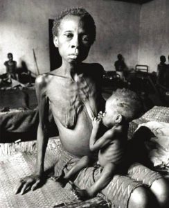 An estimated two million people, mostly Ibos, died in the war and from starvation following a land, sea and air blockade of essential food supplies by Nigerian government.